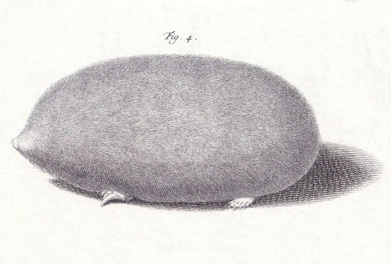 オランダの薬剤師で博物コレクターのアルベルトゥス・セバによる、彼のコレクションを網羅した博物宝典より、南アフリカの砂漠に棲息するケープキンモグラの図です。